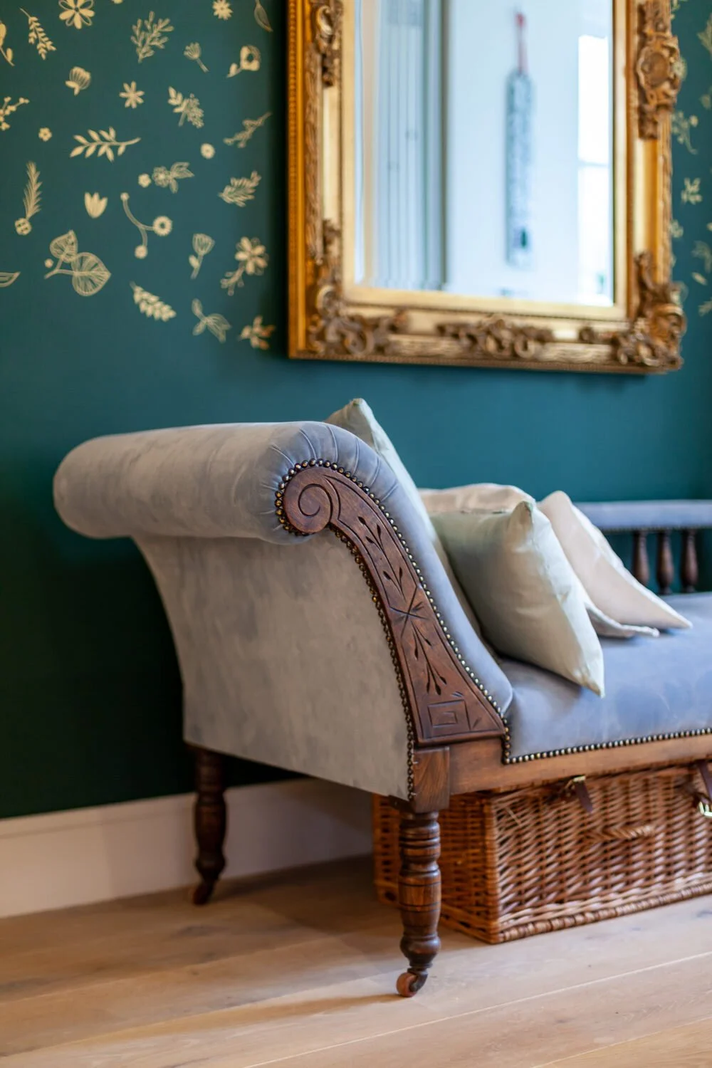 No expense was speared when it came to quality. The client chose a kitchen of the highest specs costing £27,000. It is a luxurious, compact, 5-units kitchen, made of copper and mirrors. High quality solid wood was chosen for the floor, gold leaves decorated the walls, and a 3d installation was sculptured on the bi-folded doors partitioning the extra bedroom space.