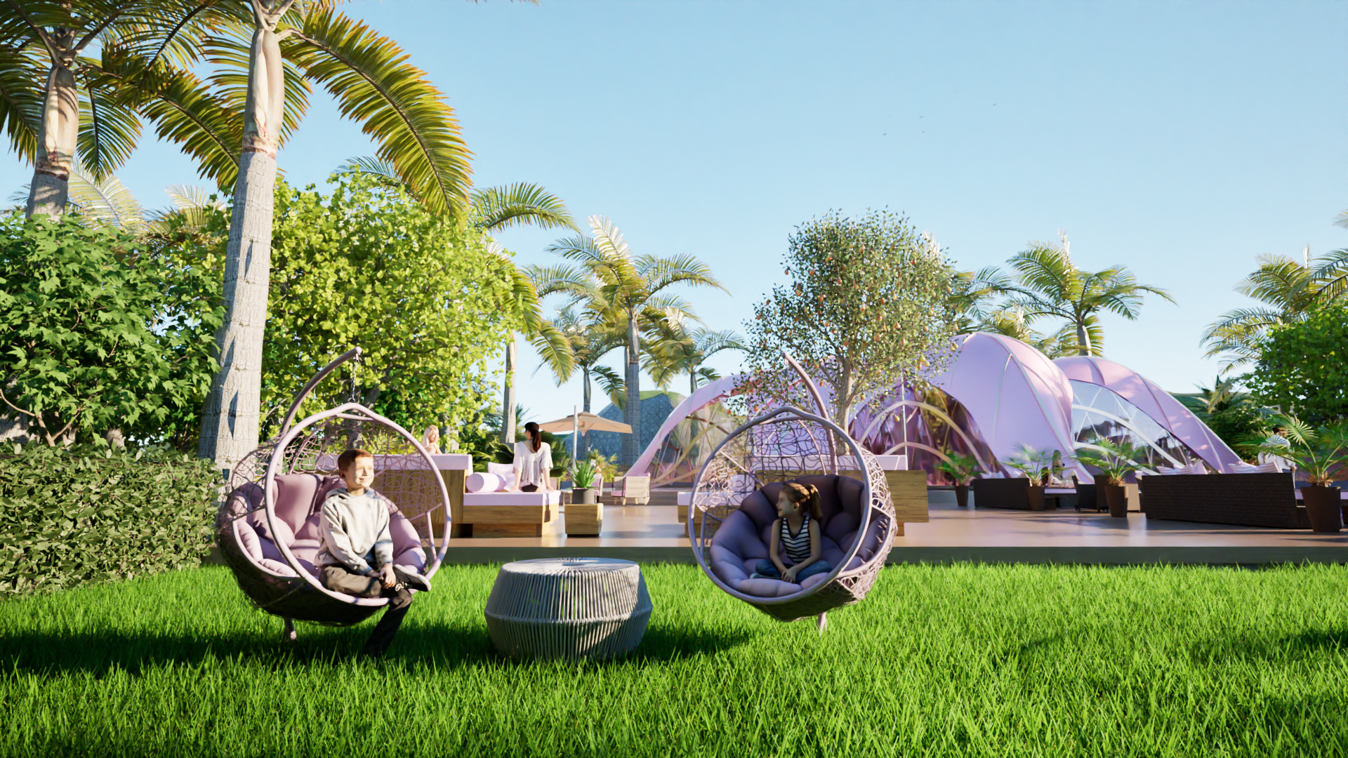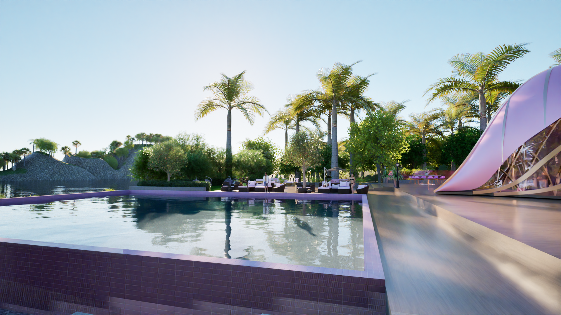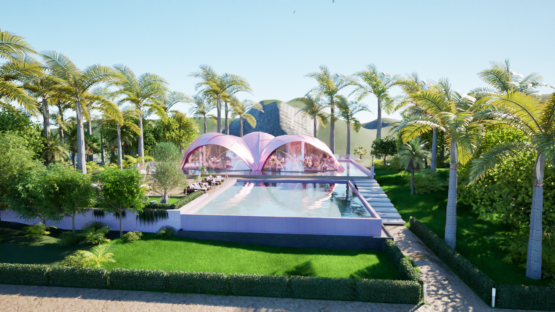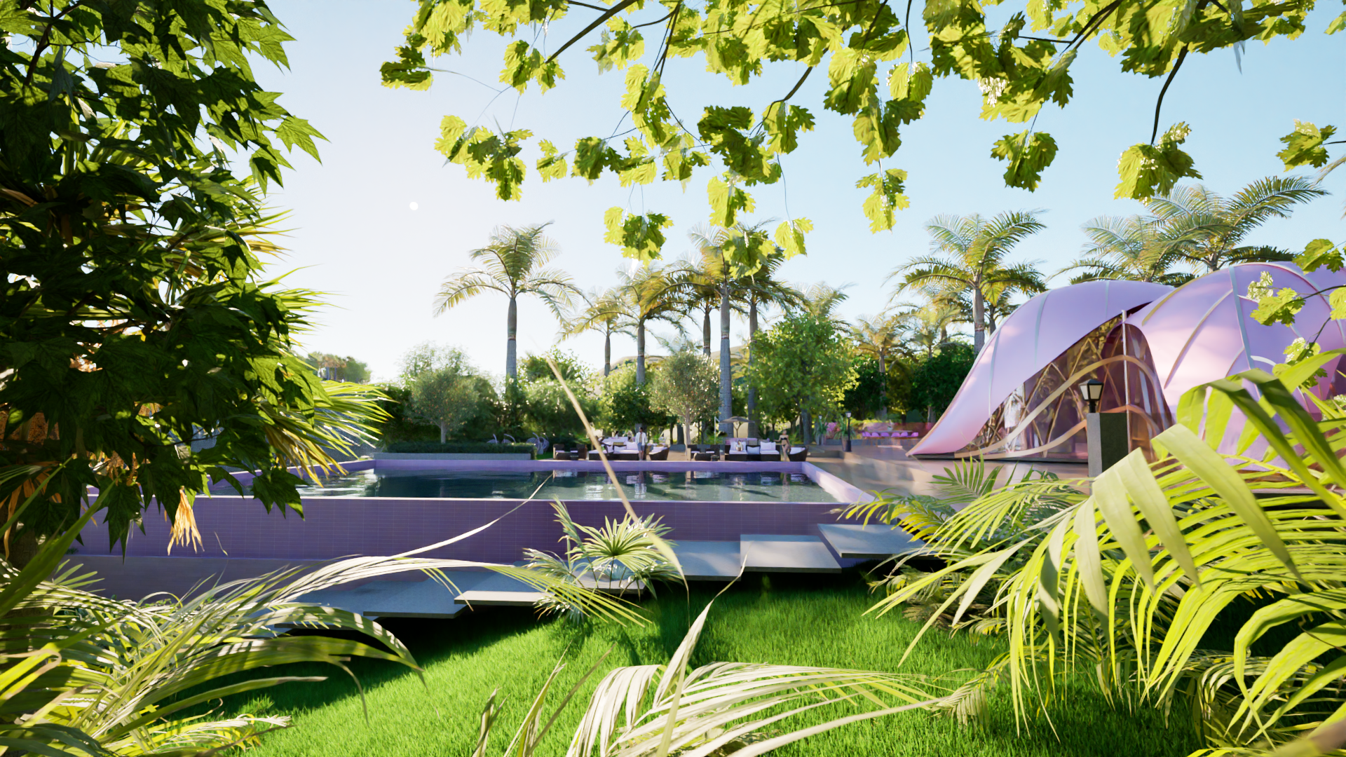 Each Palmscape Villa is designed with its own private swimming pool, offering an exclusive retreat surrounded by lush landscaping. The integration of this private pool with the villa's design ensures an uninterrupted connection to the surrounding environment, while providing a tranquil space for relaxation. The villa’s movement, following the sun’s path, brings a sense of fluidity to the design, making it a living, breathing structure that interacts with its surroundings in real time.